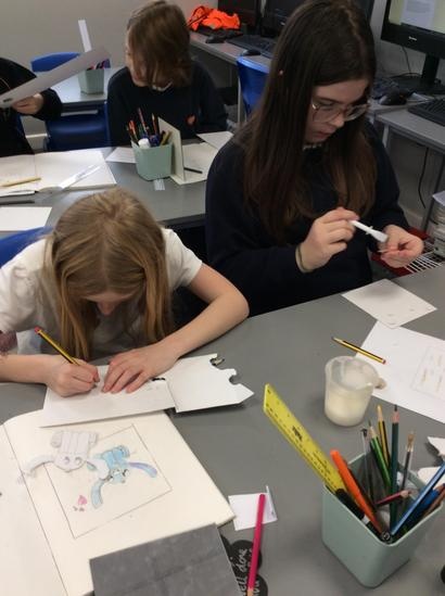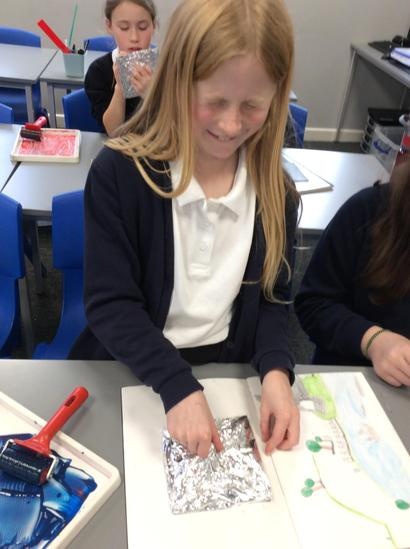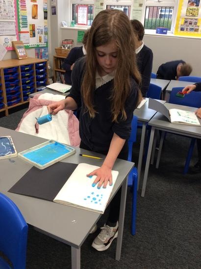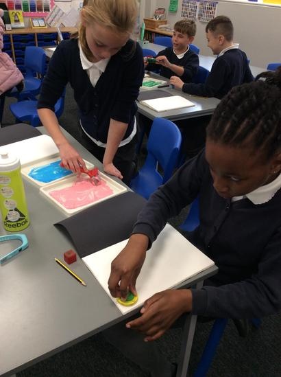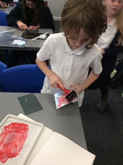 Pupils develop their art and design skills and techniques in order to progress towards becoming proficient in printmaking. They experience printmaking using a range of techniques and are encouraged to create a final printing tile, based on the technique they feel they have mastered.