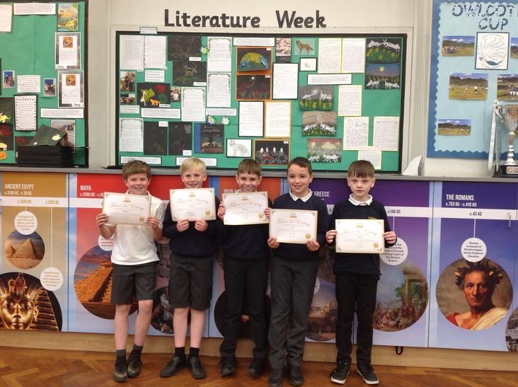 Earlier in the year our Y4 pupils entered a Young Writers competition called A Twist In The Tale. They could write an original story or retell a classic tale with a twist in just 100 words.  They had to plan, focus their ideas and consider their words choices to make maximum impact upon the reader.  Our Y4 writers are certainly building confidence with their writing and many of them were chosen to have their stories published in a book!  Well done Y4!